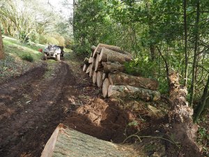 Clearing up an ash tree which fell after the hurricane above Crinodendron Hedge.