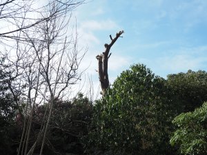 This half of the oak by George’s Hut is coming down too and some camellias cut back.