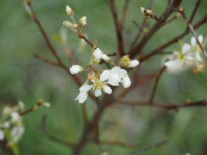 First flowering here of Amelanchier canadensis ‘Rainbow Pillar’ (‘Glennform’) – a grafted and upright plant which we have just received.