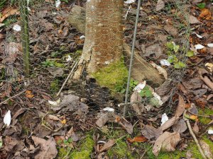 The row of Ilex cyrtura are virtually leafless except at the very top of these 50-60ft trees.