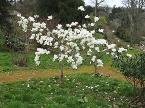 Around 15 years after the Spring Garden was planted up it is starting to look as I had always intended that it would. At least 20 big magnolias in flower today!