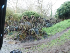 The Gunnera beds have been smashed by wind and rain.