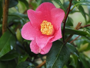 A young Camellia x williamsii ‘John Pickthorn’ just out.