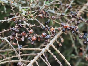 Cotoneaster horizontalis with just a few berries left.