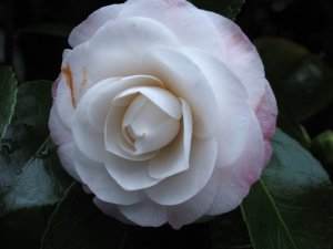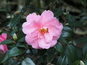 Camellia japonica ‘Devonia’ well out.