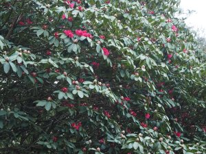Very little open because of the recent frost. Erica darleyense by far the best thin. Lapagerias and Cam sasanqua a few and odd bits of rhodo’s.