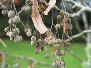 A few seeds for the first time that we have noticed high up on the 40 year old Davidia involucrata in the Auklandii Garden. This tree replaced the one here before whose trunk split out three ways. It was probably three Davidias planted together as there used to be a competition between large gardens to produce the Davidia with the biggest girth.