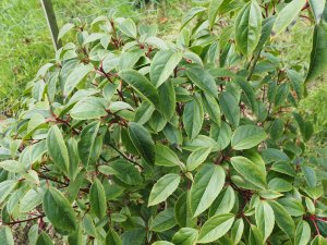 A new evergreen plant to us in flower – Dasyphyllum diacanthoides. Very odd flowers which look a lot like Illicium flowers. Not in Hillier’s or New Trees no nothing to find out other than what I see.