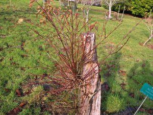 Despite deer nibbling the windblown Acer morifolium is making a comeback.