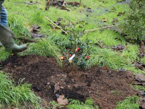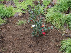 A commemorative planting in Kennel Close of a Camellia ‘Yuletide’. Reverand Michael Warner and Rosemary in attendance.