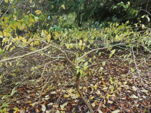 Removal of the laurel hedge has exposed Cudrania tricuspidata to the day light. (Now Maclura tricuspidata). Not too many spines on the twigs and branches.