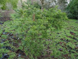 A young Magnolia pseudokobus ‘Kubimishidori’ which has never yet flowered persists in full leaf.