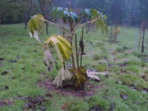 The gigantic cones on Araucaria angustifolia have just turned black and are now ripe but not yet disintegrating.