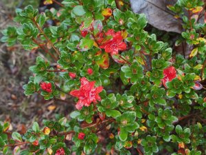 Pity the heat from a fire has killed this rhododendron in the Auklandii Garden. Rather too close to the action!