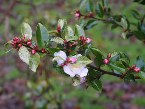 First flowers showing on our best Camellia ‘Cornish Snow’ below Donkey Shoe which is a good fortnight later than Camellia ‘Cornish Snow Michael’. Michael also has slightly larger flowers.