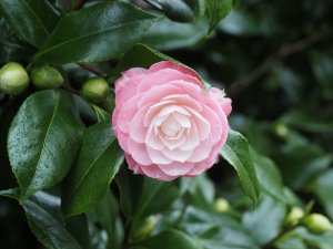 Camellia x williamsii ‘Sweet Olive’ has quite variable flowers.
