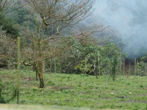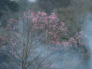 The Magnolia campbellii through the smoke of yet another bonfire.