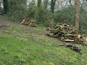 While loading tree trunks on the drive a large log rolled away into White Styles. A danger/risk we had not properly thought through in terms of the public.