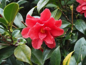 Camellia japonica (pure species) and Rhododendron ‘Ostara’ on the Main Ride.