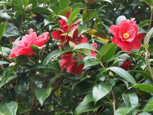 Three Camellia reticulata varieties just now out in flower:
