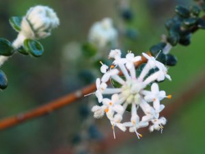 Pimelea drupacea in full flower in the sun. A native of Tasmania and S.E. Australia which, like yesterday’s offerings from New Zealand, should be summer flowering.