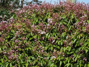 Osmanthus heterophyllus ‘Sasaba’ as an established small tree in full sun. We grow this in shade above Hovel Cart Road.