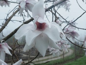 Last flowers on Magnolia ‘Philip Tregunna’ below the Engine House.