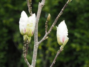 Our own seedling of the pink form of Magnolia kobus . Not much pink!