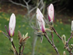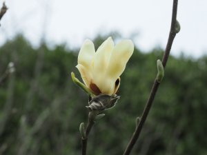 The first of the yellow magnolias to show – Magnolia ‘Petit Chicon’ has 3 flowers today.