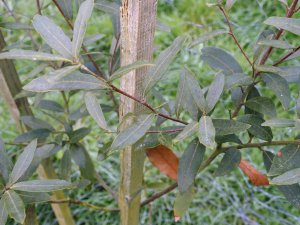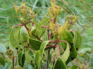 Viburnum propinquum (CWJ 12426) with flower showing.
