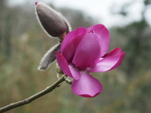 First close up this year of a bud and flower on Magnolia ‘Caerhays Splendour’.