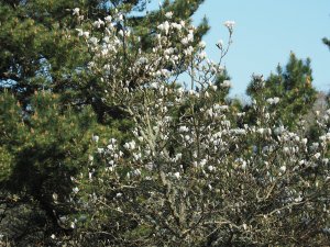 The normally later flowering Magnolia ‘Serene’ is already out.