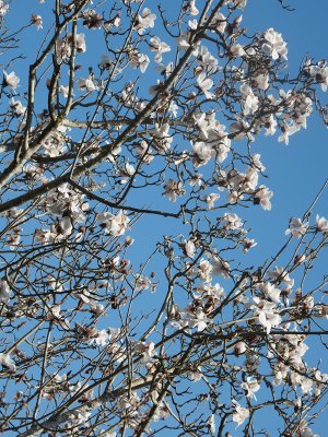 Magnolia cylindrica ‘Bjuv’ just coming out in Kennel Close.
