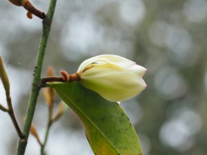 At last, and for the first time here, Magnolia ernestii (formerly Michelia wilsonii M. sinensis) is just out. Similar in shape and colour to M. martinii but smaller and less yellow – although the leaves are quite different. Nice to have in the collection but not that big a ‘wow factor’. Lots more buds to come.