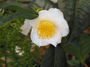 A near perfect flower on Camellia ‘Noblissima’ by the front door.