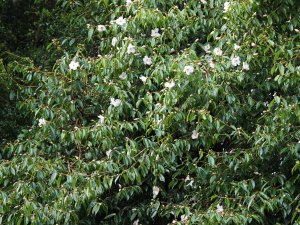 Camellia sasanqua on wall very very good. Oleifera just beginning. 3 pods of Mag nitida. Put in a lot of Sargenteanum, Mollicomata, and Dawsonianum seed. Yellow Hammer (rho) good, also fuschias.