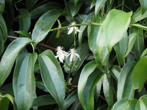 Sarcococca wallichii just out into flower. A tall growing and erect species now 5-6ft high.
