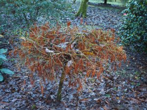 Quercus dentata ‘Karl Ferris Miller’ holds its old leaves all winter and makes a rather fine display. If you cut a branch and sprayed the leaves white who needs a Christmas tree? Our old original Quercus dentata in the Rookery also holds its rather smaller leaves into winter but is in the teeth of the wind there. This is an excellent slow growing tree. We now have three in the garden dotted about.