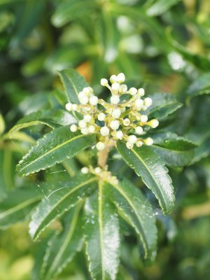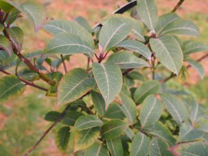 Ilex chapaensis (HWJ 946) has struggled in the drought with dieback. Now well pruned to encourage regrowth from lower down as here.