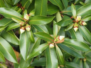 Proper first flowers now out on Rhododendron nobleanum. I saw the same on the Tregothnan drive yesterday.