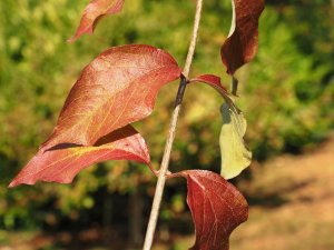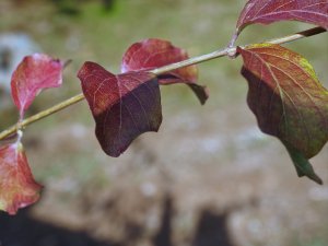 Autumn colours on Lonicera quinquelocularis ‘Translucens’.