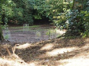 Work is now underway making a new planting below the camellia foliage area for large leaf rhododendrons next spring. A well sheltered area in dappled shade which will remain damp in dry spells. A few very old Camellia japonicas are to go as well as some myrtles and a few trees have been upraised around about.