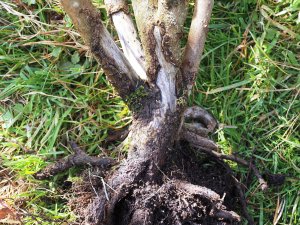 Magnolia ‘Princess Margaret’ has keeled over even more and needs pollarding to survive. A clear split at the graft at ground level so it may well be ‘curtains’ anyway.