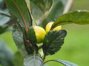 Sorbus wardii with small clusters of 2-5 yellow/ orange fruits.