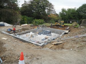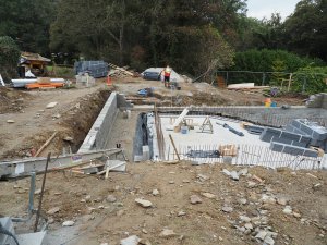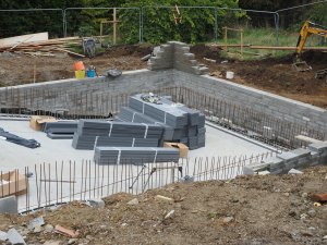 The base of the swimming pool takes shape as the blockwork rises out of the ground.