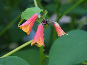 The first berries on a young Viburnum setigerum which was a Wilson introduction. The berries go from yellow-orange to red when ripe.