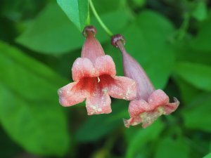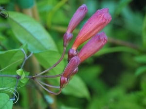 Bignonia capreolata with the first set of flowers that I have ever seen.