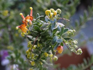 Grevillea ‘Gold Touch’ with flowers.