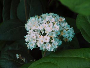 Viburnum cinnamomifolium with an unseasonal flower.