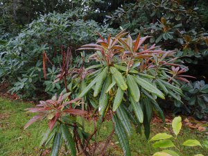 Rhododendron glanduliferum finally putting on new growth after the drought.